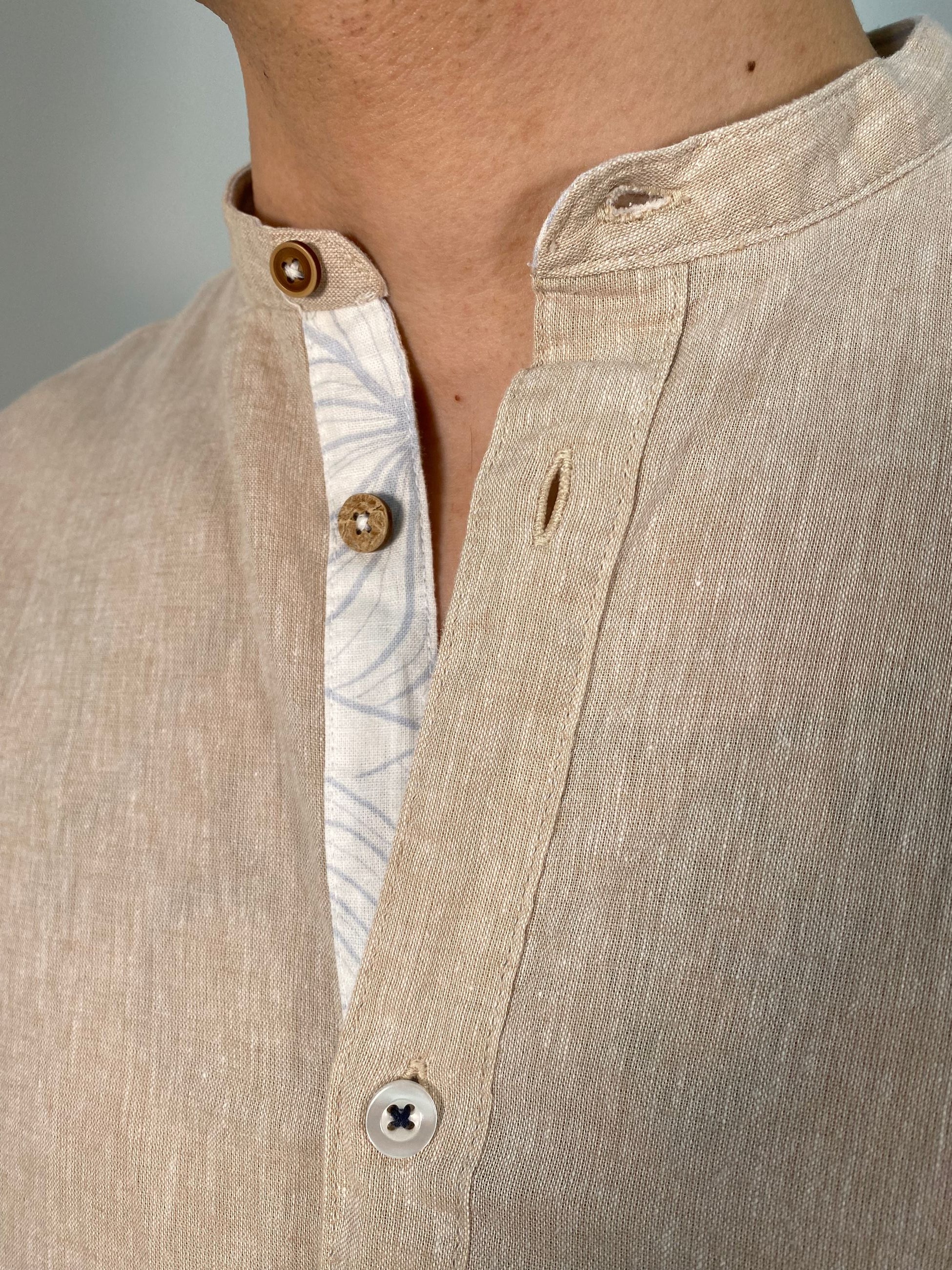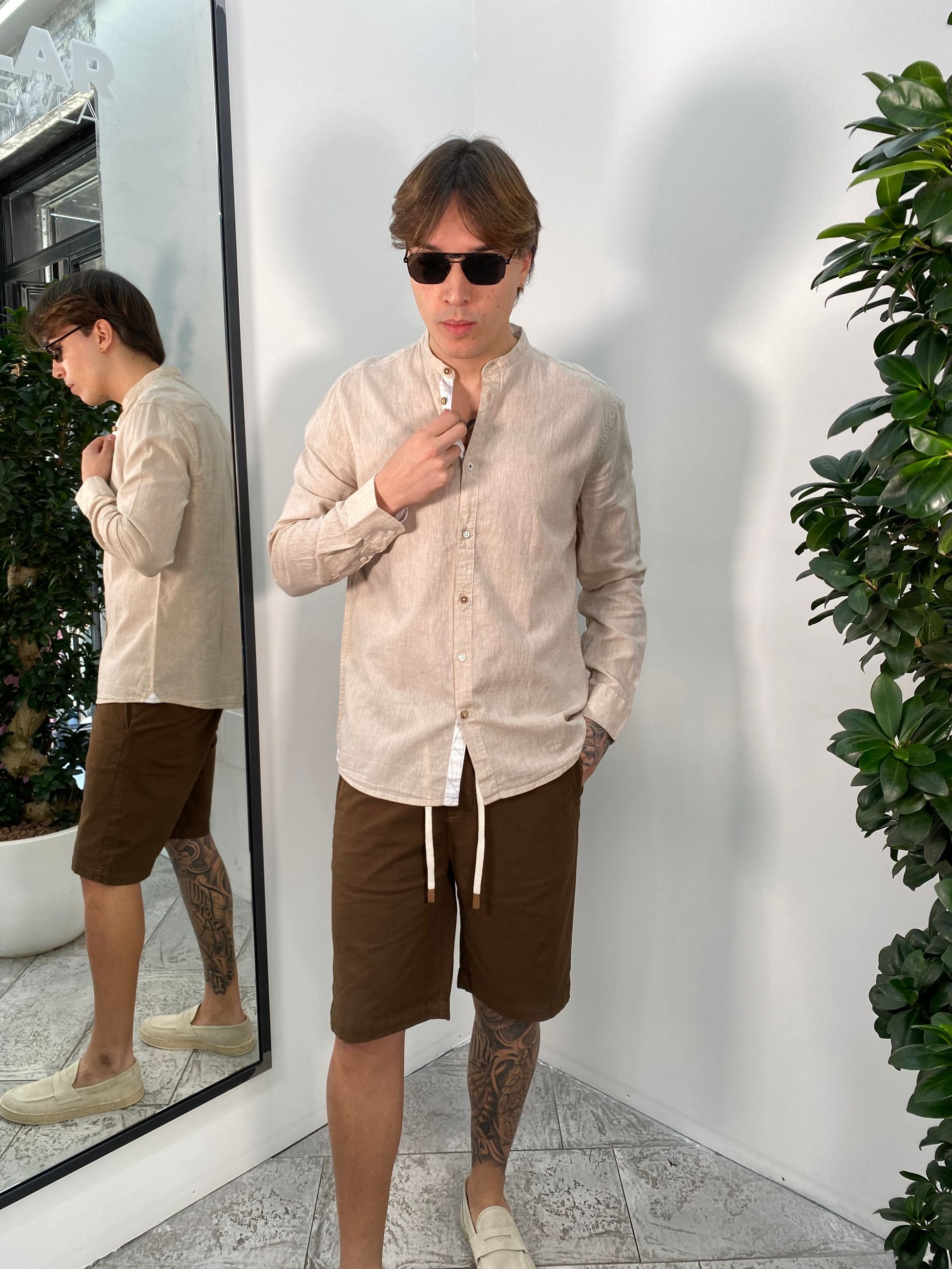 CAMICIA COREANA MANICA LUNGA IN MISTO LINO FIAMMATO - REGULAR FIT CE989SS.BEI