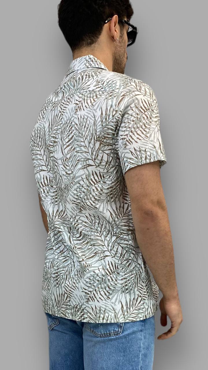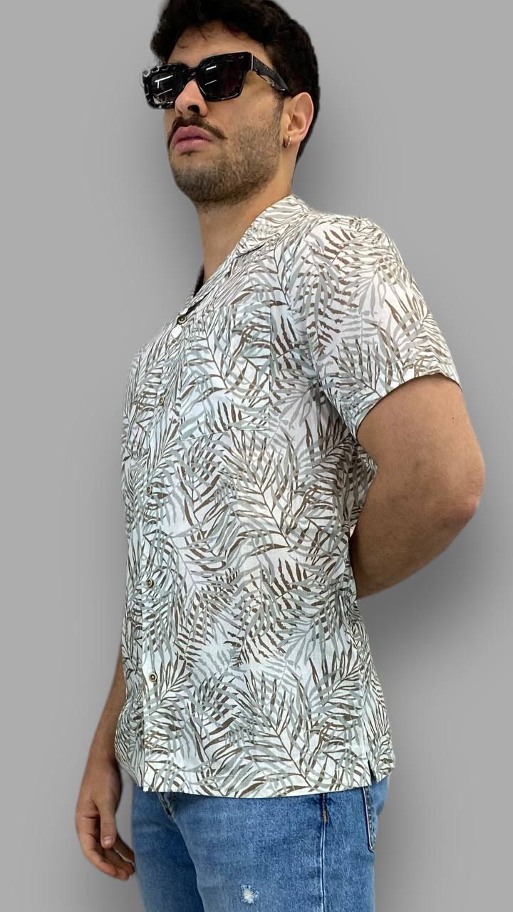 CAMICIA HAWAIANA IN MISTO LINO MEZZA MANICA FANTASIA PALME - REGULAR FIT