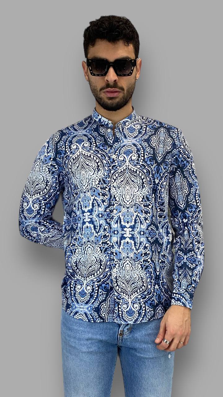 CAMICIA IN COTONE CON COLLO ALLA KOREANA FANTASIA - REGULAR FIT