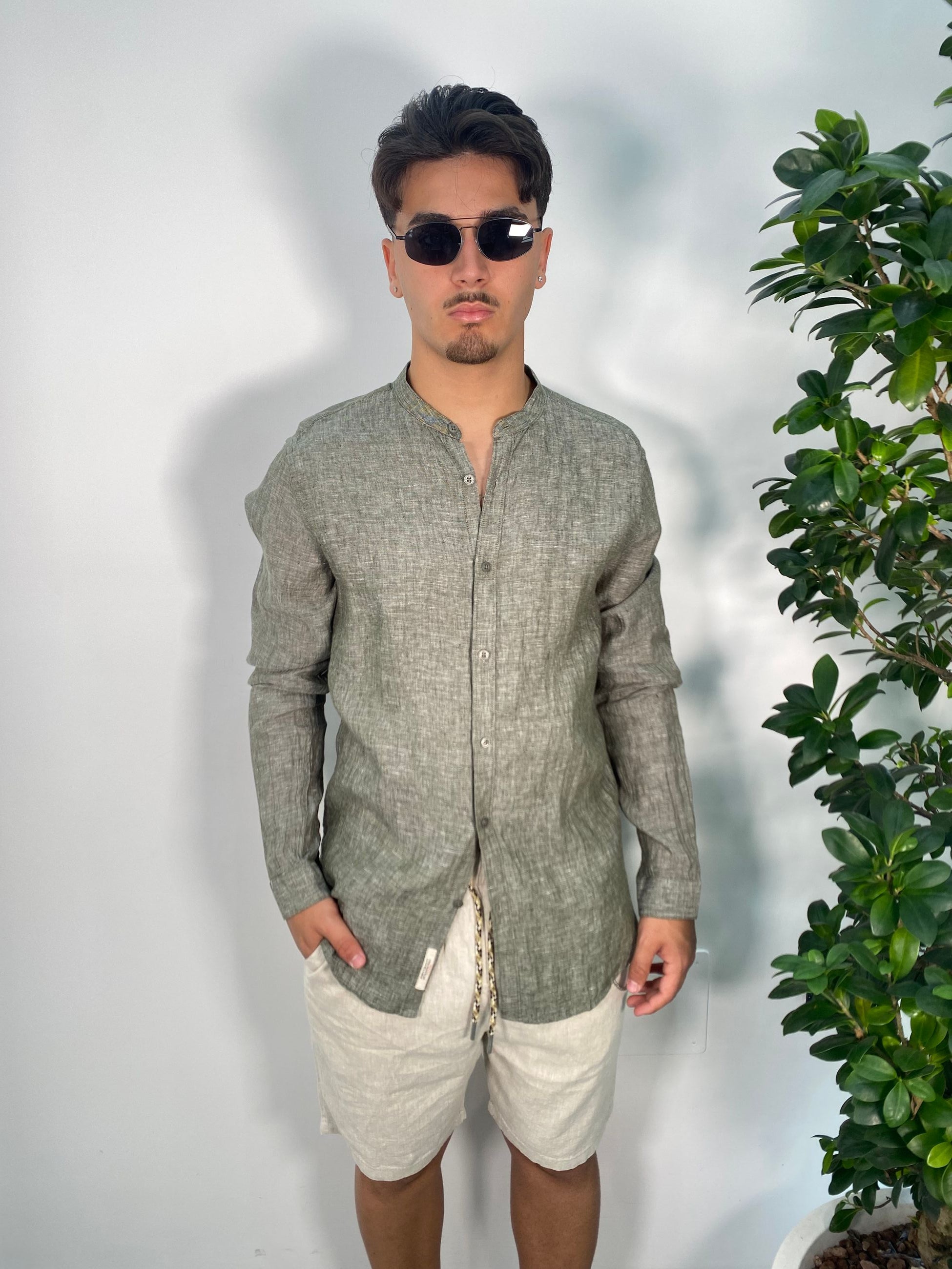 CAMICIA IN LINO FIAMMATO COLLO COREANO - REGULAR FIT GL7733S-S25.VMIL