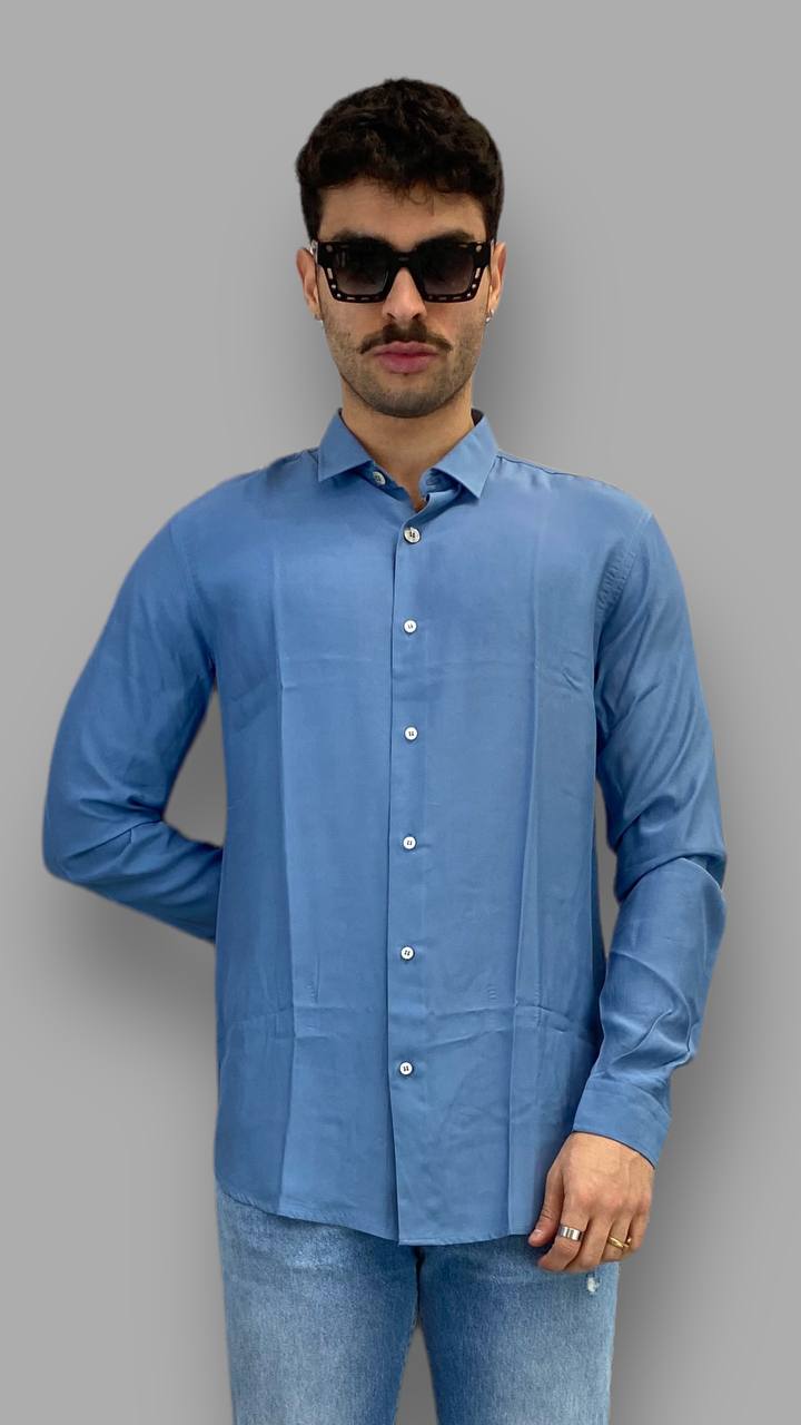 CAMICIA IN MORBIDA VISCOSA CON BOTTONI EFFETTO LEGNO - REGULAR FIT