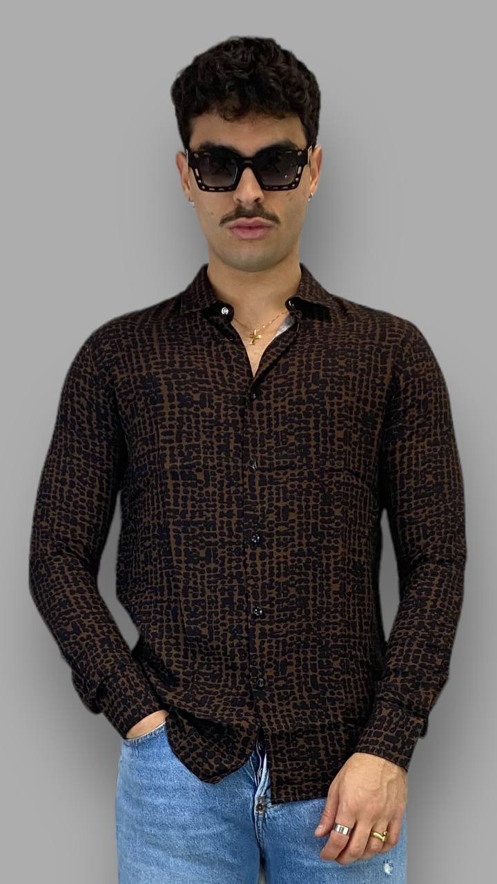 CAMICIA IN VISCOSA FANTASIA EFFETTO ANIMALIER - SLIM FIT