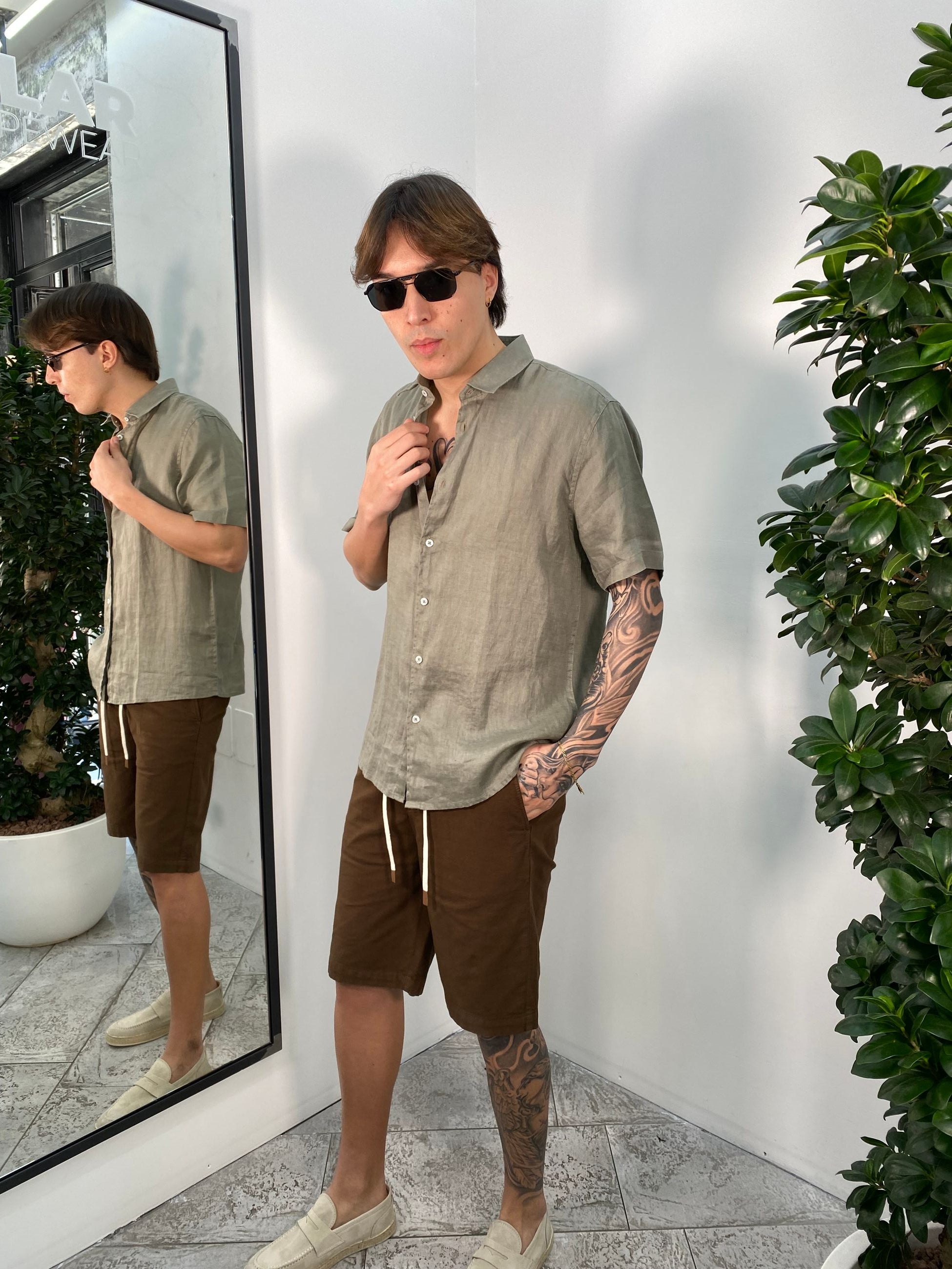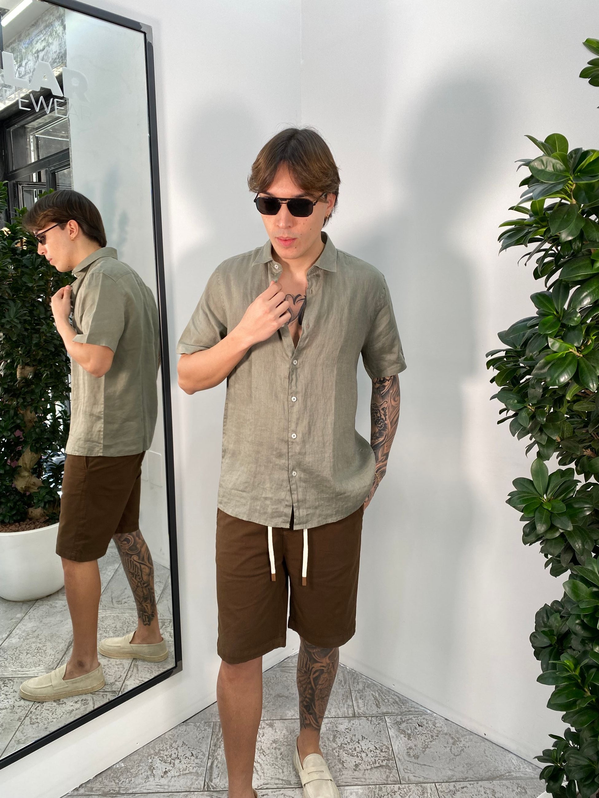 CAMICIA MEZZA MANICA IN 100% LINO FIAMMATO - REGULAR FIT CE988SS.MUS