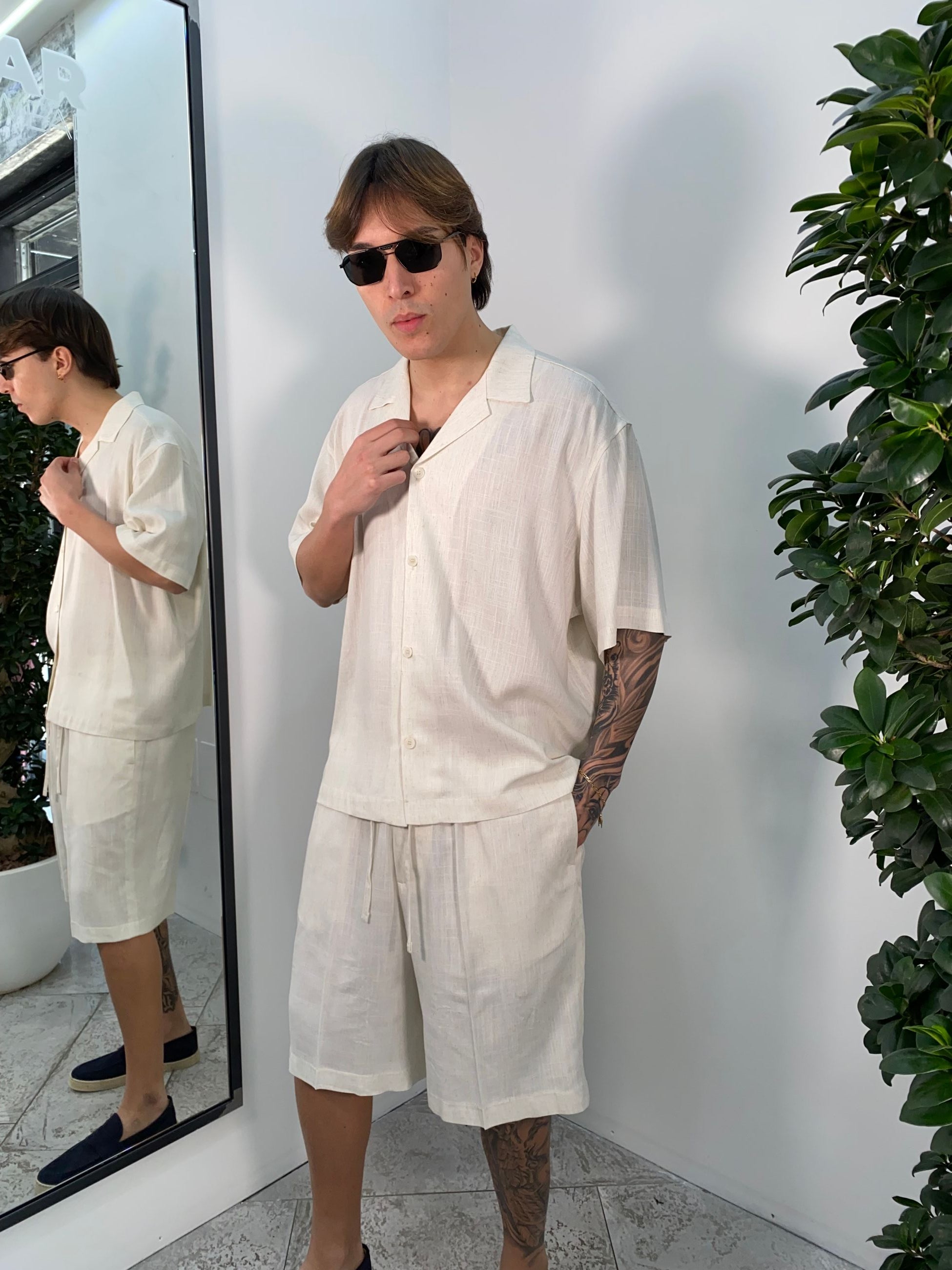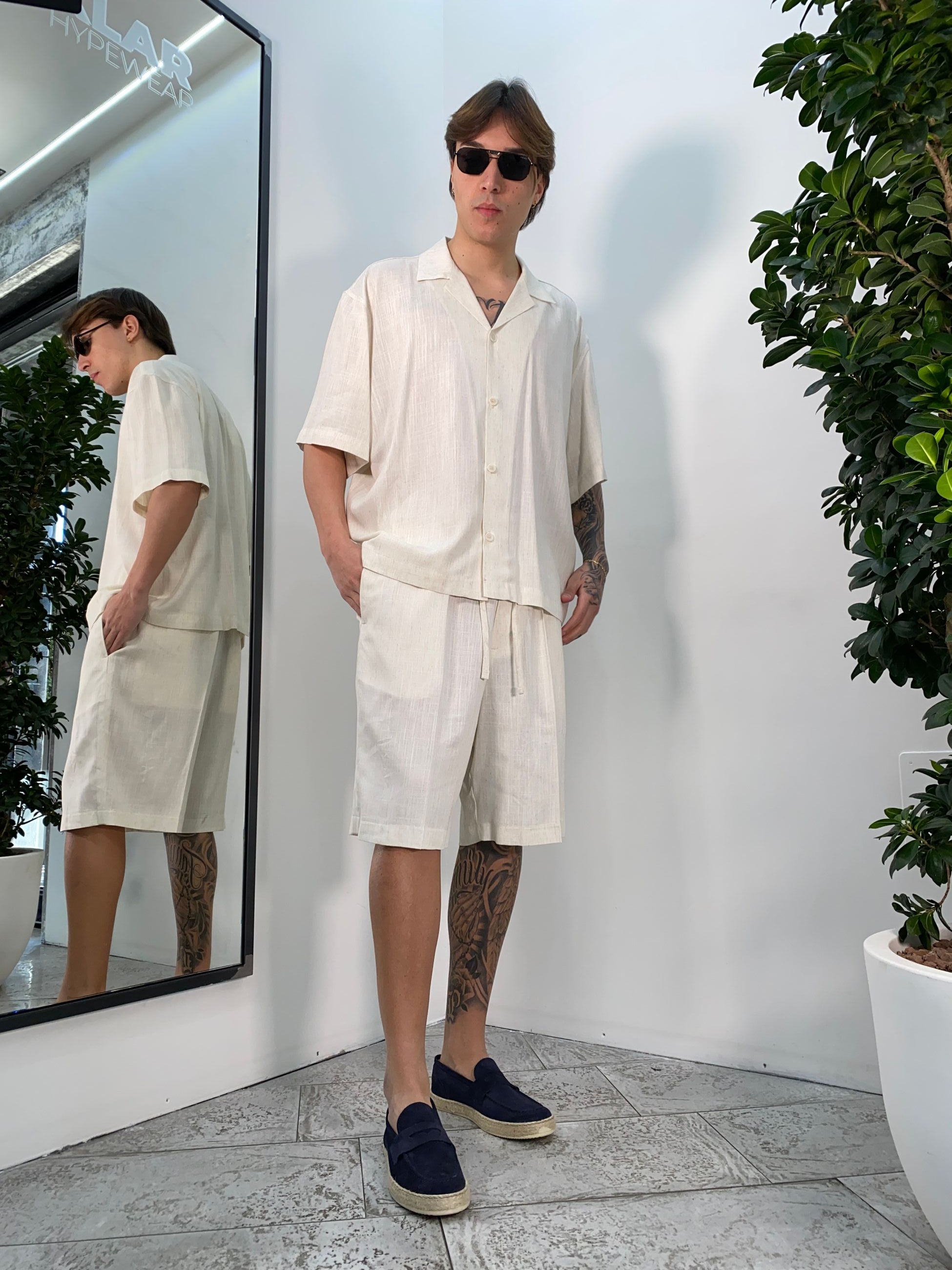 CAMICIA MEZZA MANICA IN MISTO LINO EFFETTO FIAMMATO - OVER FIT CA3283.PAN