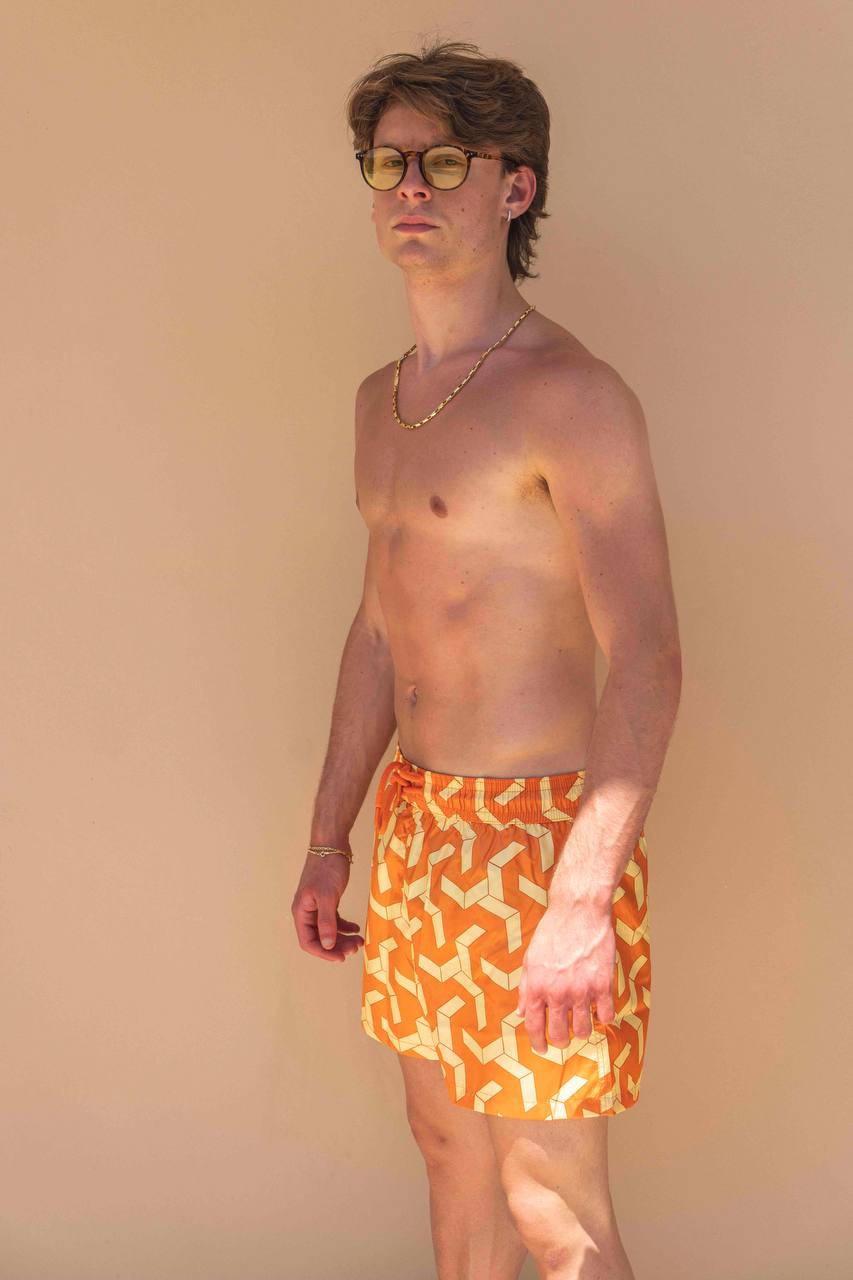 L'elegante costume modello boxer con fantasia tangram garantisce un comfort assoluto e si asciuga immediatamente, per un'esperienza di balneazione senza precedenti! Deliziatevi con il massimo comfort e l'asciugatura rapida di questo costume unico.