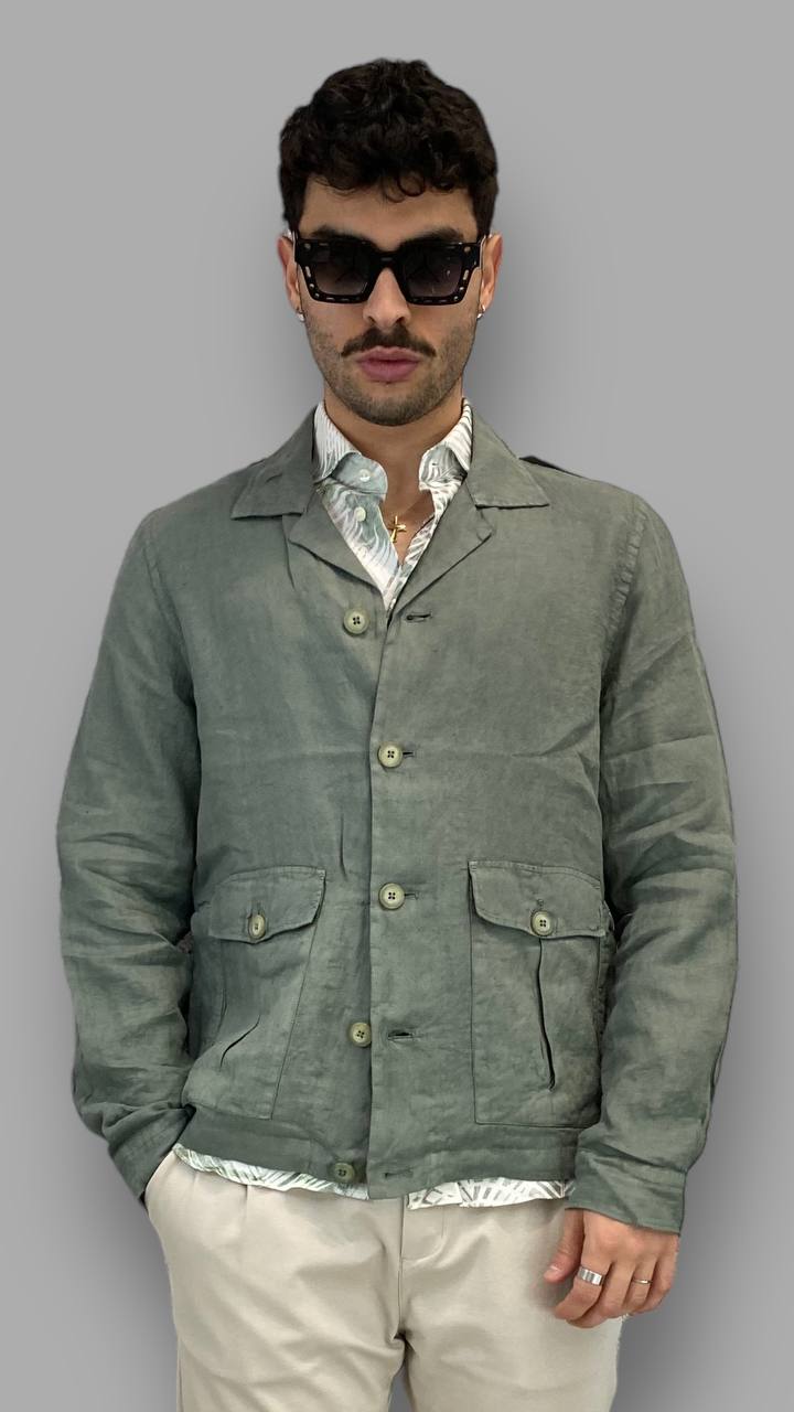 GIACCA CAMICIA IN PREGIATO LINO CON TASCHE A TOPPA - REGULAR FIT