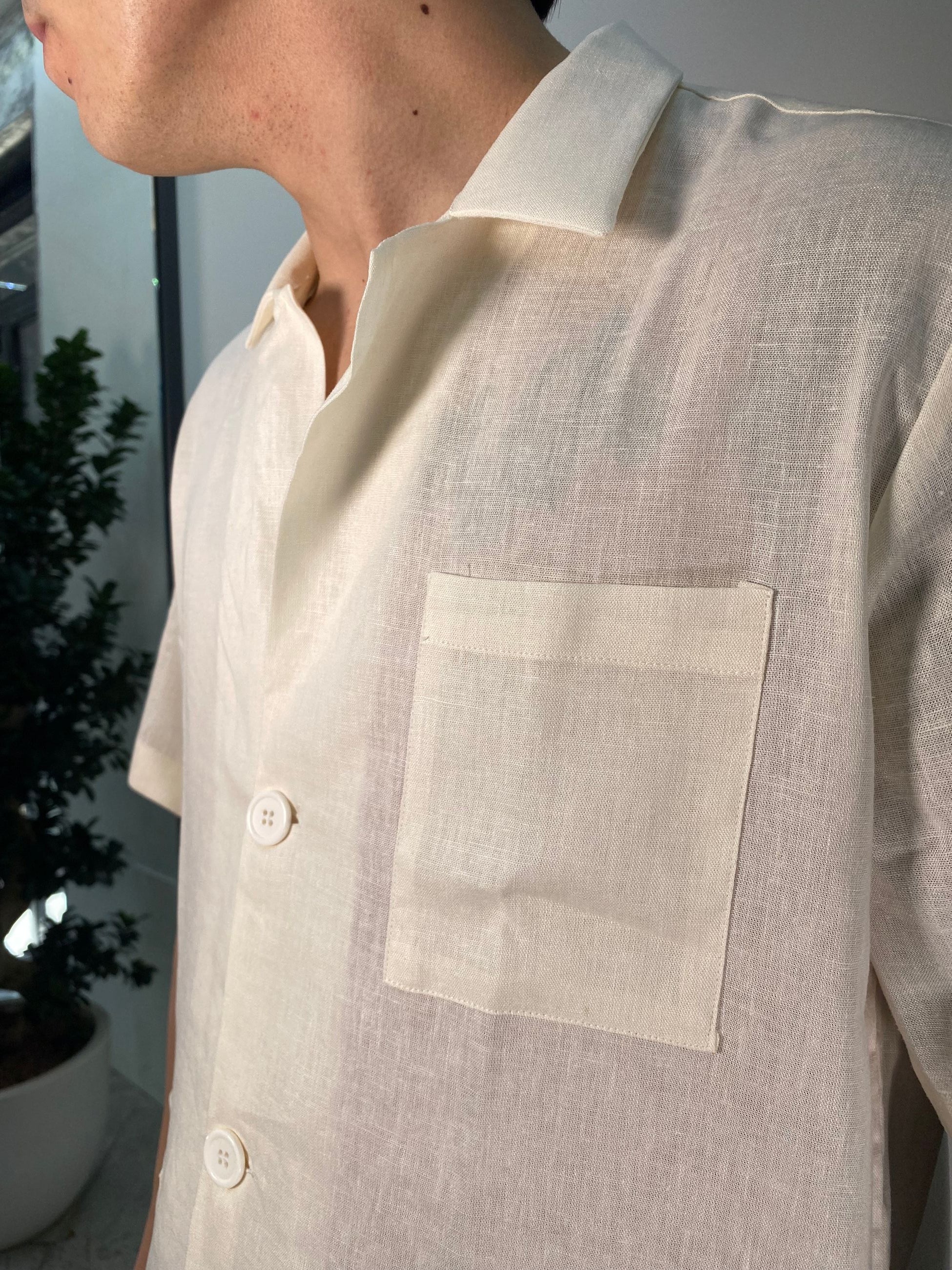 GIACCA CAMICIA MANICA CORTA IN MISTO LINO CON TASCHE A TOPPA - REGULAR FIT FD912 - CAM103.BUR