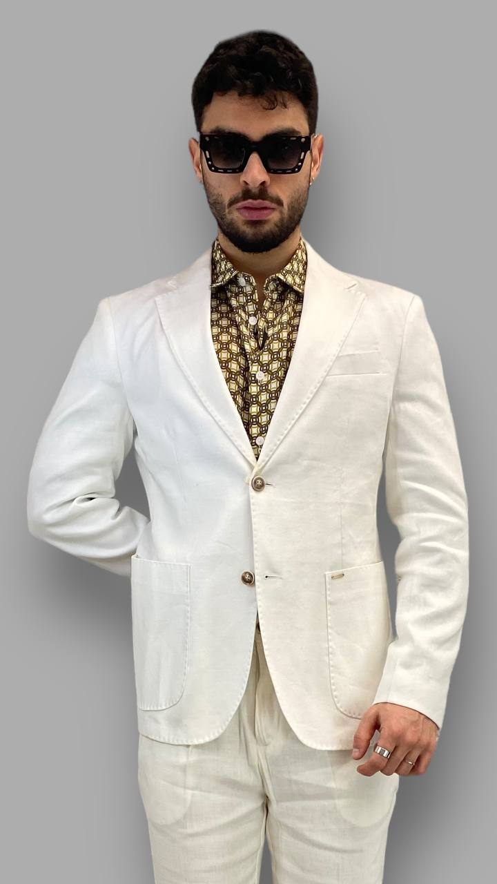 GIACCA DA ABITO MONOPETTO IN MISTO LINO ELASTICIZZATO CON COLLO REVERS E TASCHE A TOPPA - REGULAR FIT