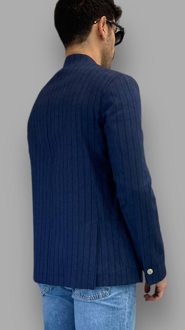 GIACCA GESSATA DOPPIOPETTO 6 BOTTONI IN PREGIATO TESSUTO MISTO LINO - REGULAR FIT