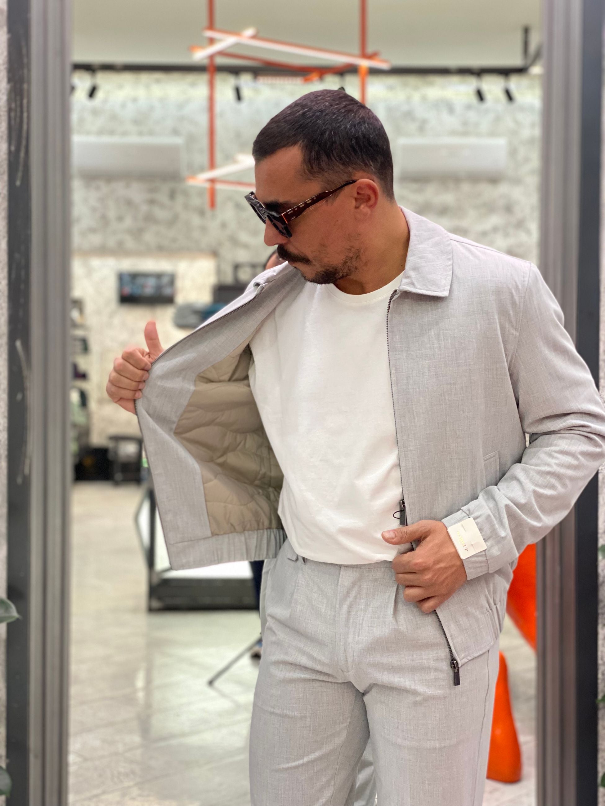 GIUBBINO ZIP DA COMPLETO IN FLANELLA PETTINATA CON ELASTICO AL FONDO E AI POLSI. TASCHE A FILO. TRAPUNTA ALL'INTERNO - REGULAR FIT MK9960192.GRI