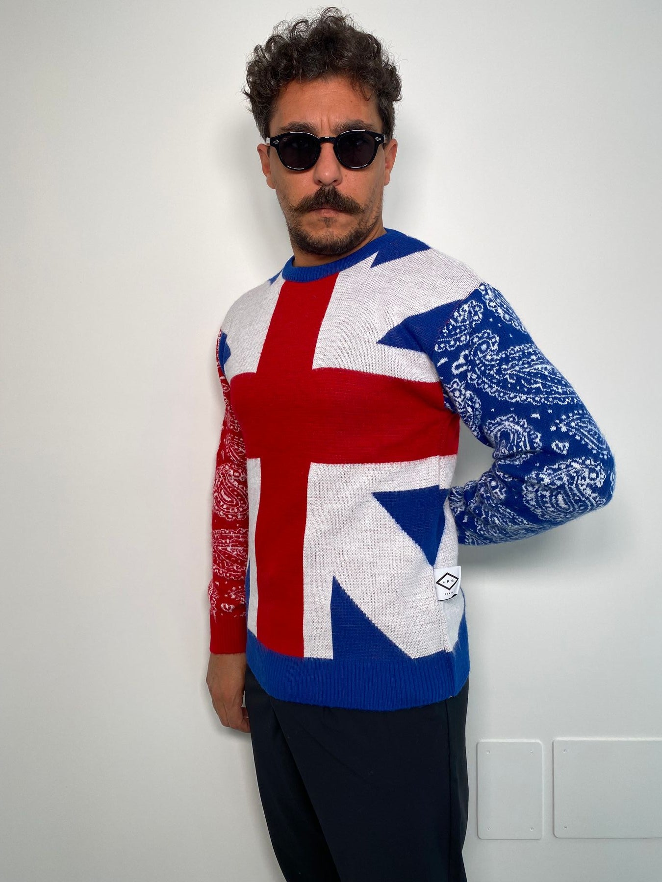 MAGLIA GIROCOLLO IN MISTO LANA CON TRAMA BANDIERA - REGULAR FIT