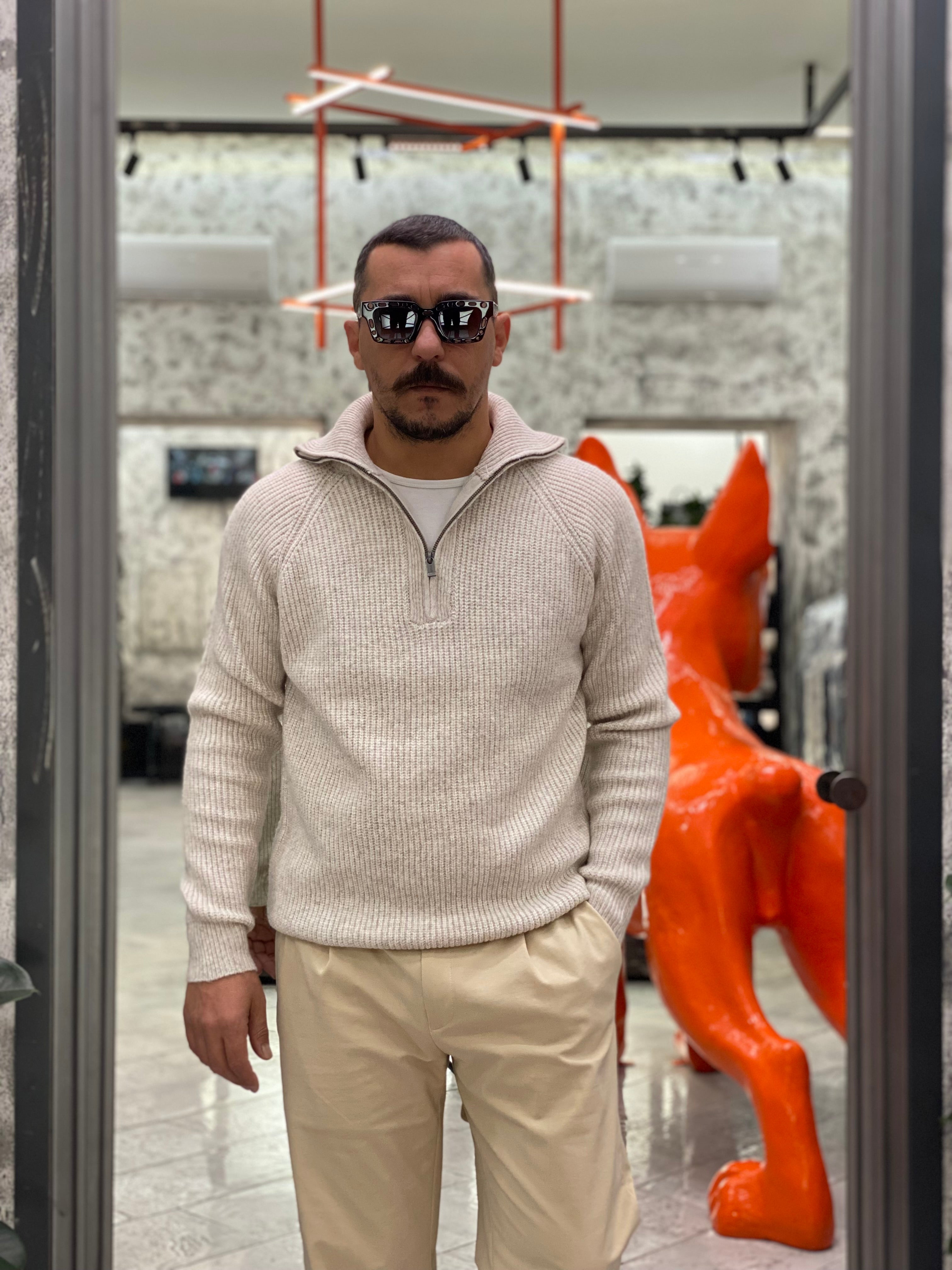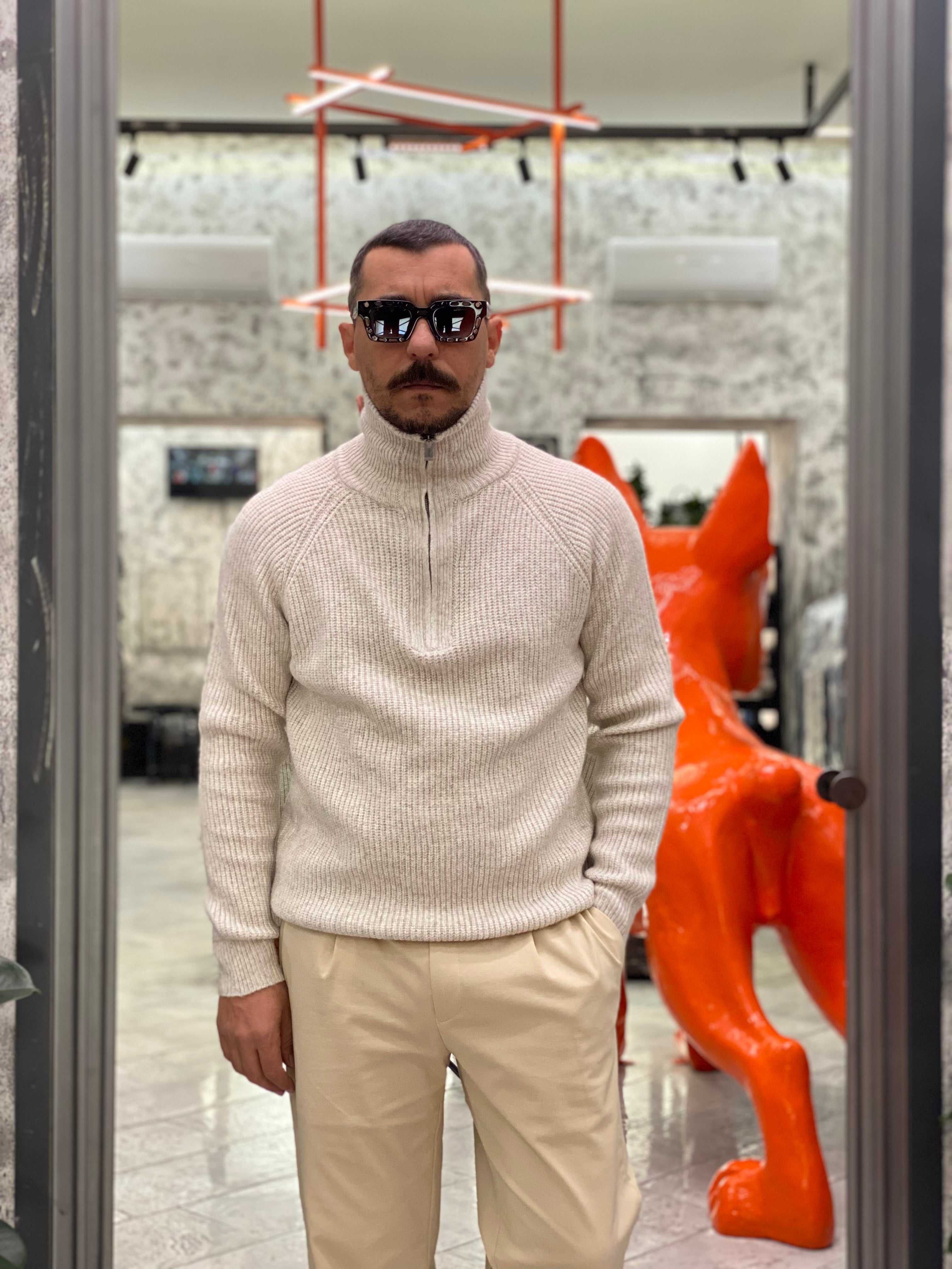 MAGLIA MEZZA ZIP JAVIER IN MISTO LANA - REGULAR FIT 10062246.BEI