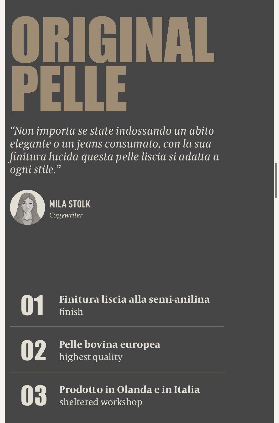 Ogni capo è il riflesso presente in store, e online, sono il riflesso di ore e ore di lavoro nella selezione per la qualità, l'attenzione ai dettagli e alla modernità del prodotto;