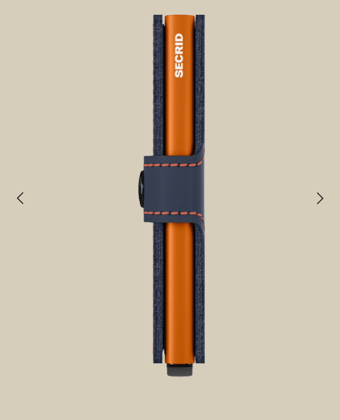 MINIWALLET PORTA CARTE E BANCONOTE IN MORBIDA PELLE OPACA CON CUCITURE IN CONTRASTO MM-NIGHTBLUE&ORANGE