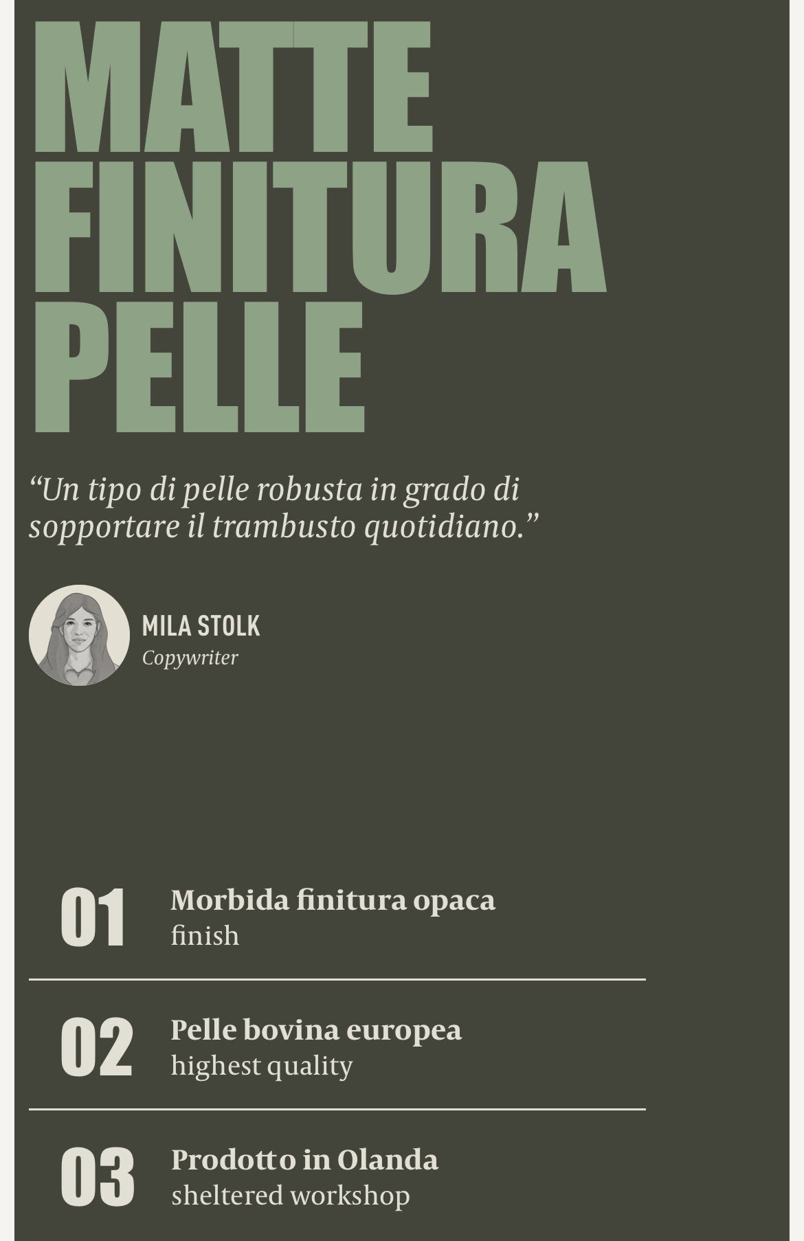 Ogni capo è il riflesso presente in store, e online, sono il riflesso di ore e ore di lavoro nella selezione per la qualità, l'attenzione ai dettagli e alla modernità del prodotto;