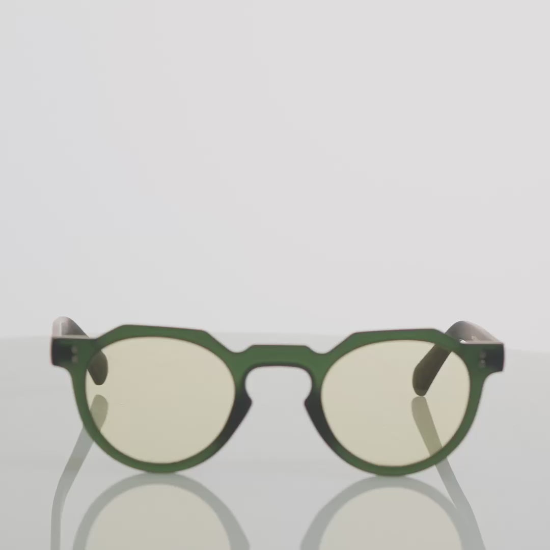 OCCHIALI LONDRA VERDE COLORE MONTATURA VERDE OPACO COLORE LENTE GIALLO