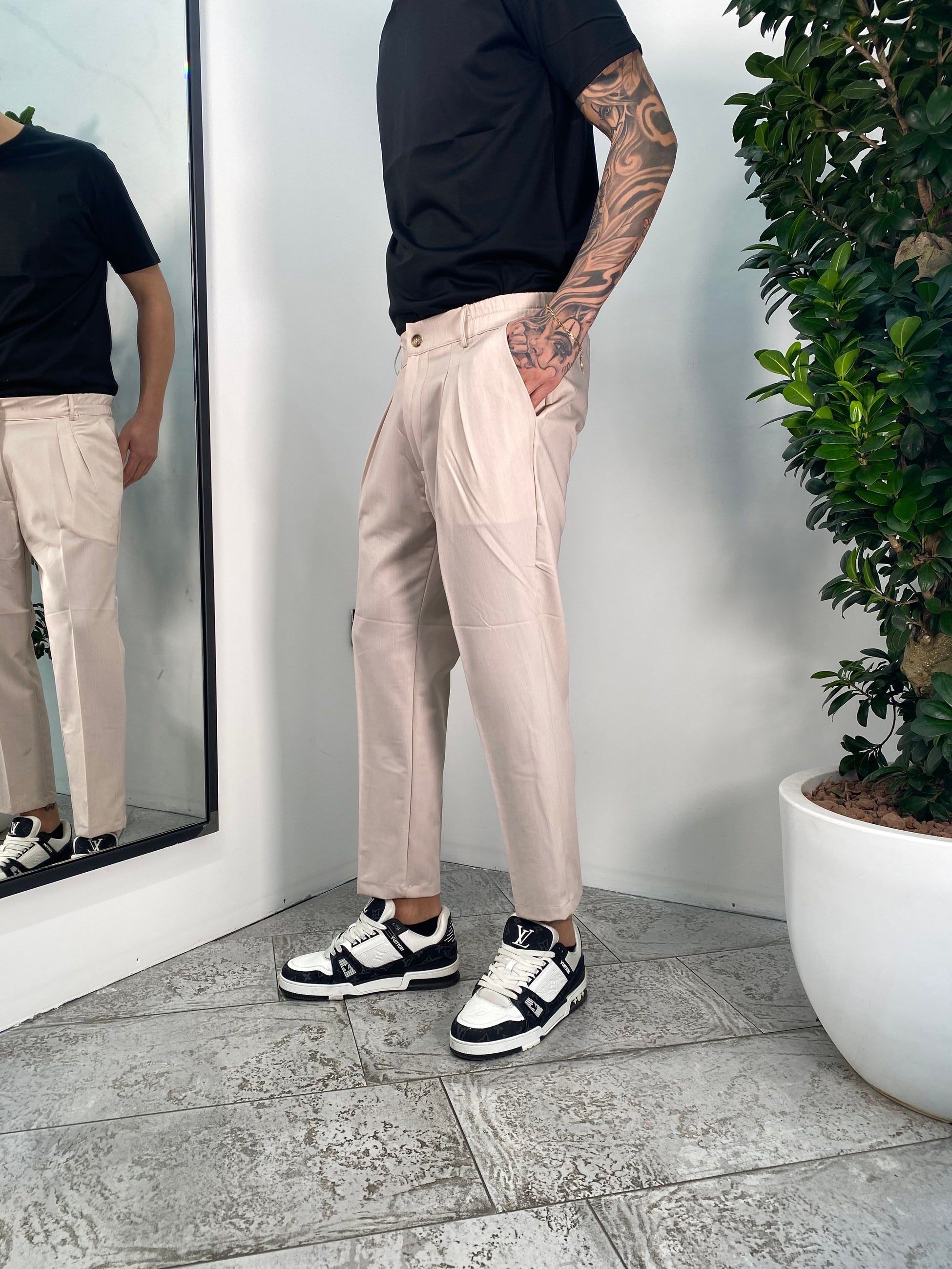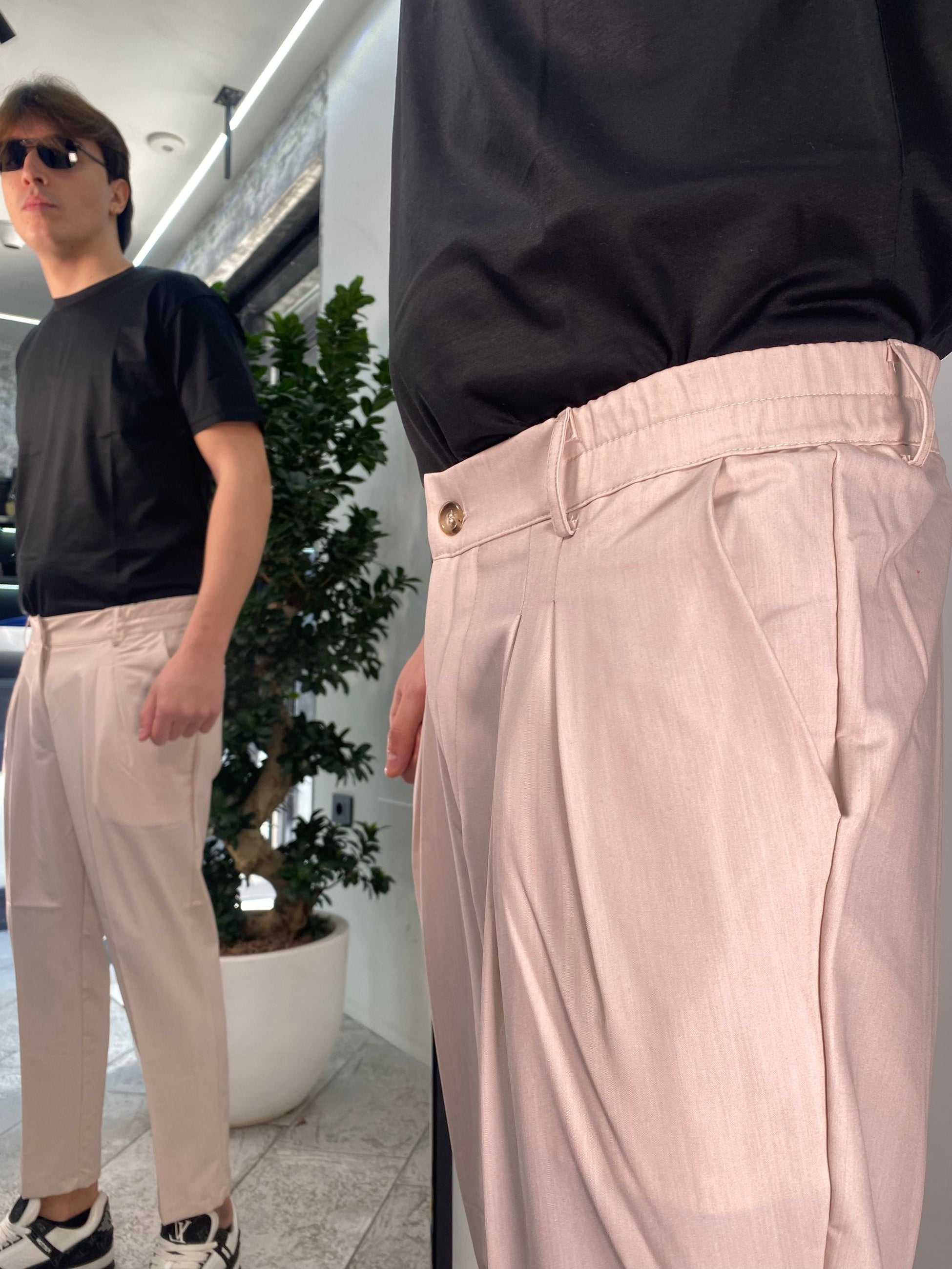 PANTALONE CAPRI CON DOPPIA PINCE, COULISSE IN VITA E RISVOLTO AL FONDO - REGULAR FIT FD217 - PA806.ECRU