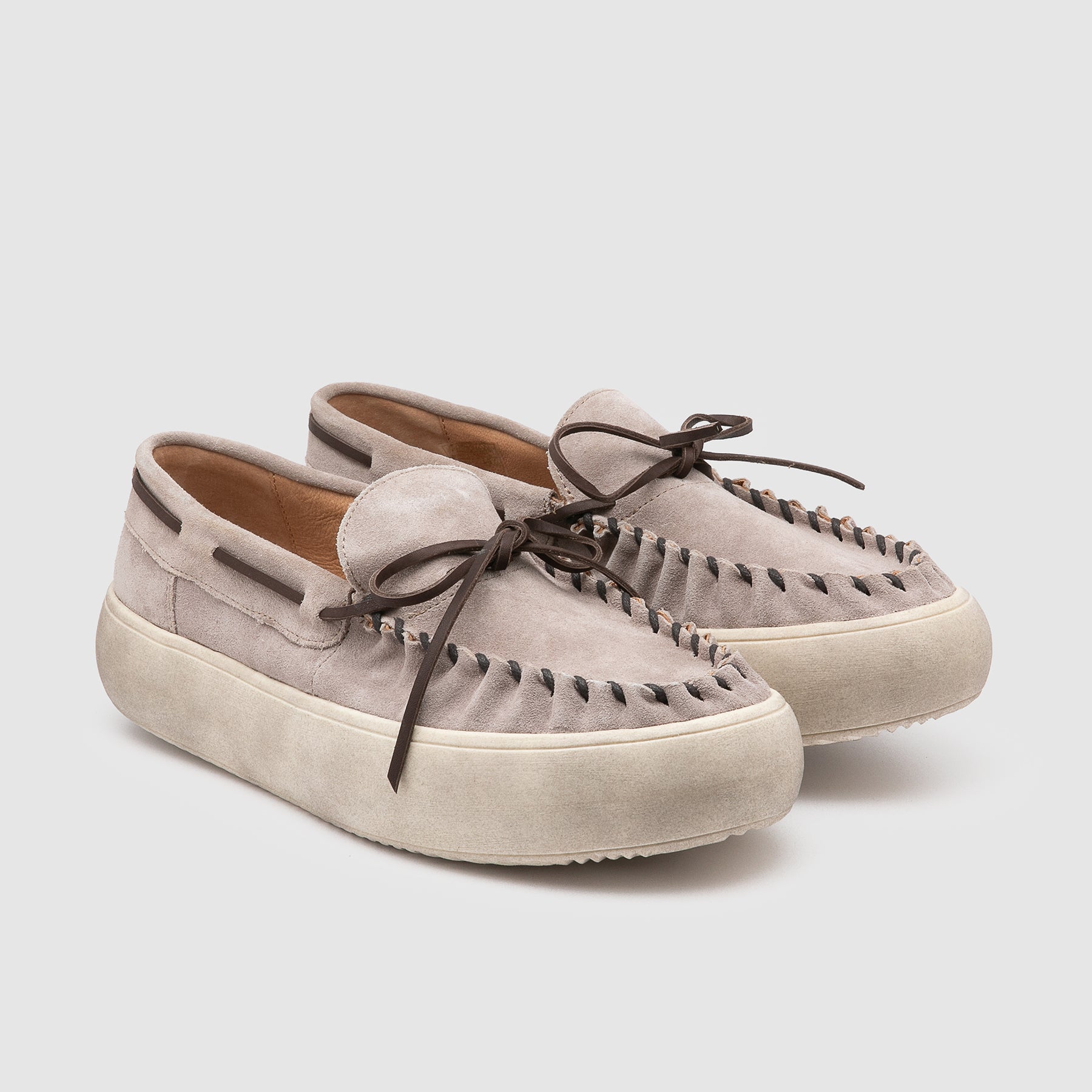 SNEAKER IN CAMOSCIO CON CUCITURA MOCASSINO E ARRICCIATURE CON FONDO BOMBATO LAVORATO A MANO 47401.TAU