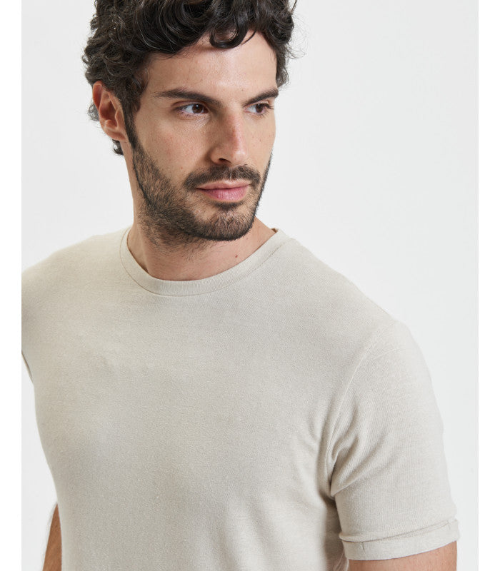 T-SHIRT BASIC IN MISTO LINO/VISCOSA - REGULAR FIT GL2276F.BEI